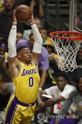 [점프볼=이보현 객원기자]오직 LA 레이커스 러셀 웨스트브룩만이 보여줄 수 있는 플레이였다.