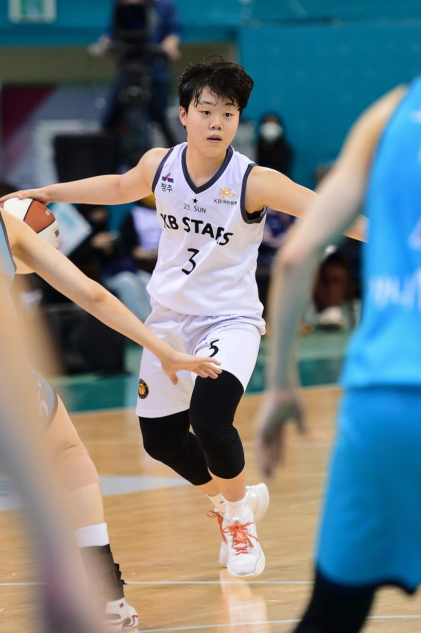 KB스타즈에 신예가 떠올랐다. 바로 2021 WKBL 신입선수 선발회에서 1라운드 4순위로 입단한 신예영이다. KB스타즈는 최근 주전 5명의 선수들이 코로나19 이슈에 휩쓸리면서 이날 엔트리에 오를 수 있는 인원은 단 10명뿐인 상황에 처해 있었다. 녹록지 않은 상황에서 김완수 감독은 벤치 선수들의 자신감과 화합을 바랐다. 그리고 신예영이 김 감독의 바람에 응답했다.