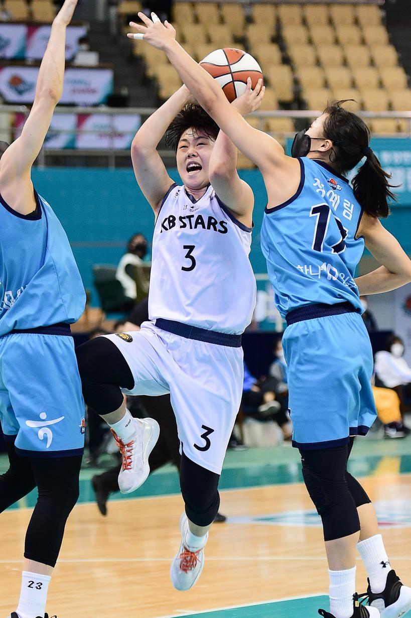 청주 KB스타즈가 21일 부천체육관에서 열린 삼성생명 2021~2022 여자프로농구 부천 하나원큐와의 6라운드 경기에서 74-68로 이기며 2연승을 질주했다. KB스타즈는 25승(4패)을 신고했다.