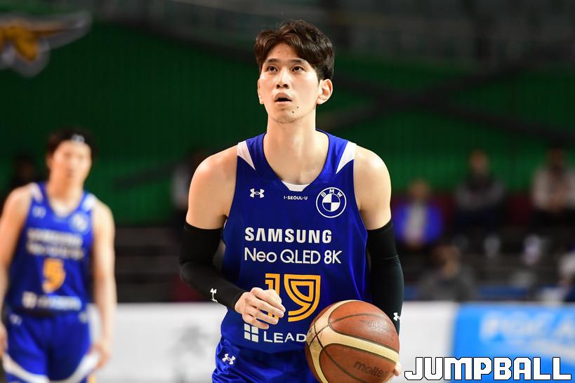 4일 잠실실내체육관에서 열린 2021-2022 KGC인삼공사 정관장 프로농구 서울 삼성과 서울 SK의 S-더비 6차전 경기, 삼성 강바일이 자유투를 시도하고 있다.