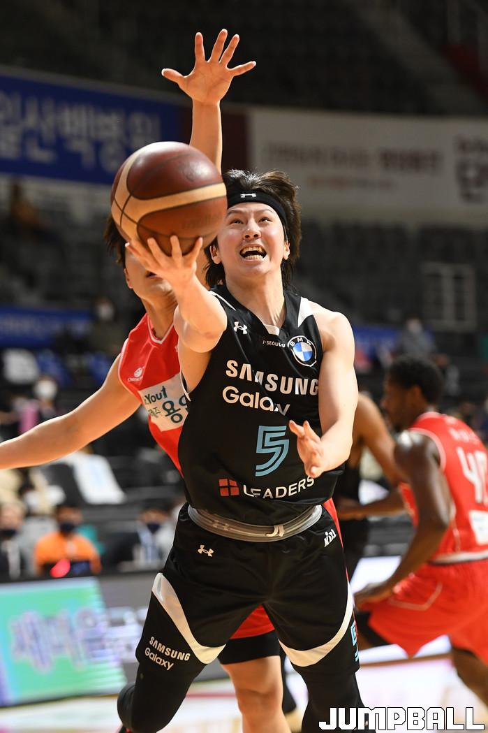 2일 고양체육관에서 열린 2021-2022 KGC인삼공사 정관장 프로농구 고양 오리온과 서울 삼성의 경기, 삼성 김시래가 레이업슛을 시도하고 있다.