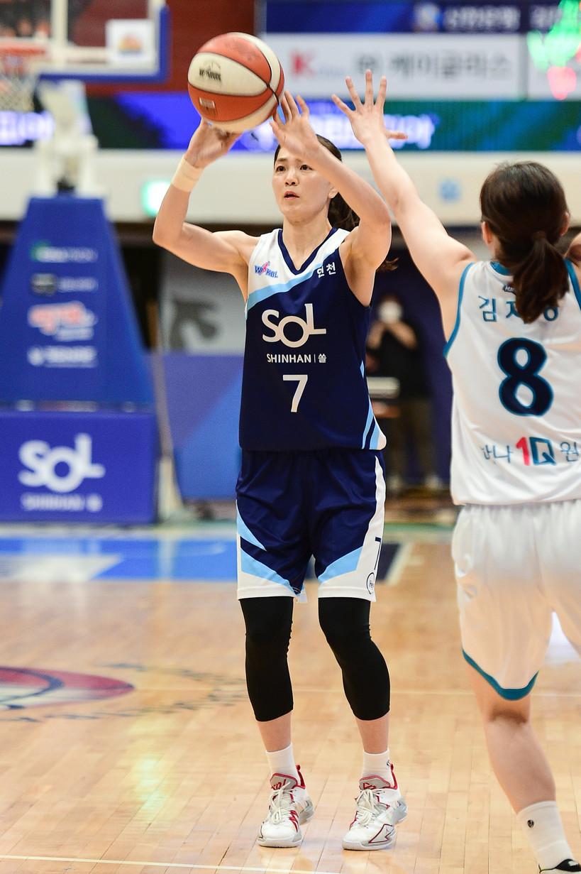 4쿼터 초반에도 코트를 지킨 한채진은 3점슛 2방을 터뜨리며 존재감을 뽐냈다. 경기 내내 끌려가던 신한은행은 한채진의 3점슛으로 역전에 성공했고, 분위기를 타며 10점차 승리를 거뒀다.