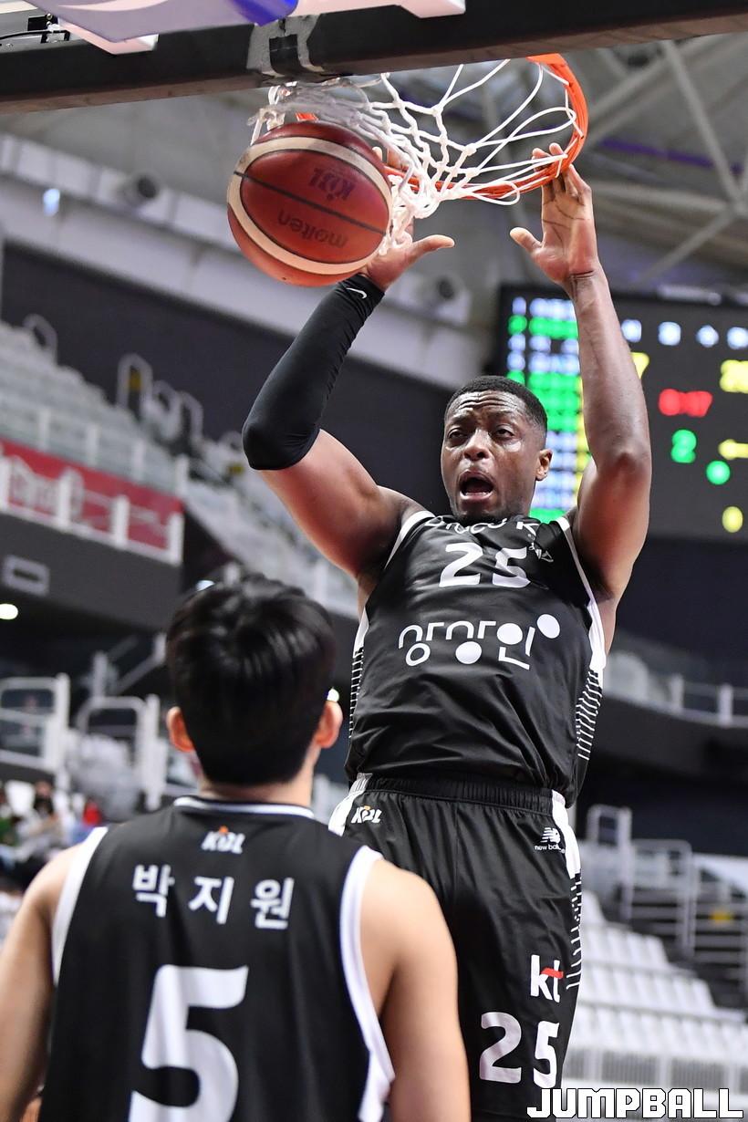 수원 KT의 캐디 라렌은 15일 수원KT 소닉붐 아레나에서 열린 2021-2022 KGC인삼공사 정관장 프로농구 서울 삼성과의 맞대결에서 22점 10리바운드로 더블더블을 기록하며 승리를 견인했다.