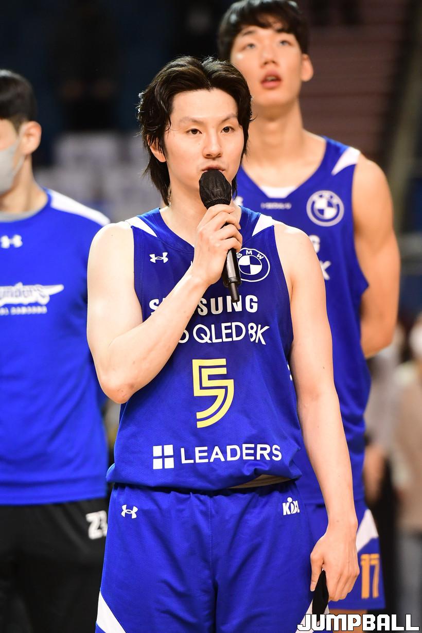 5일 잠실실내체육관에서 열린 2021-2022 KGC인삼공사 정관장 프로농구 서울 삼성과 고양 오리온의 경기, 삼성 김시래가 이번 시즌 경기를 마친후 팬들에게 인사를 하고 있다.