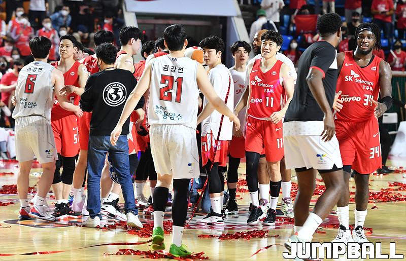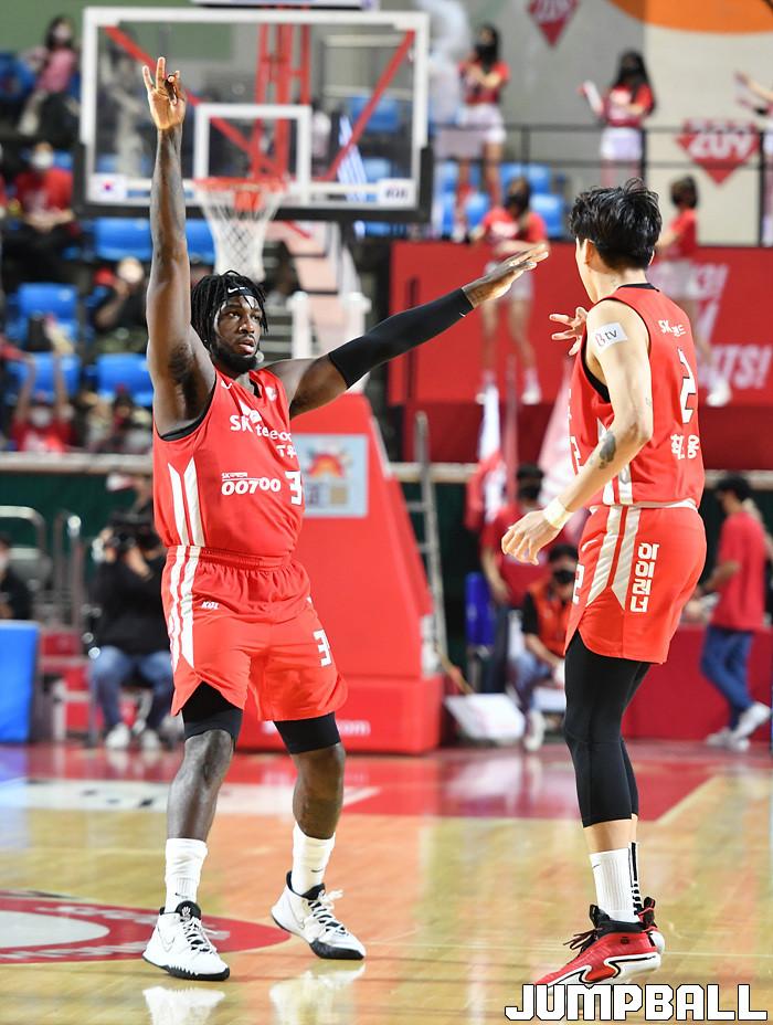 자밀 워니(33점 15리바운드 4어시스트)가 골밑을 완벽하게 장악했고, 김선형(20점 4리바운드 6어시스트)과 안영준(14점 8리바운드 3어시스트)도 존재감을 뽐냈다.