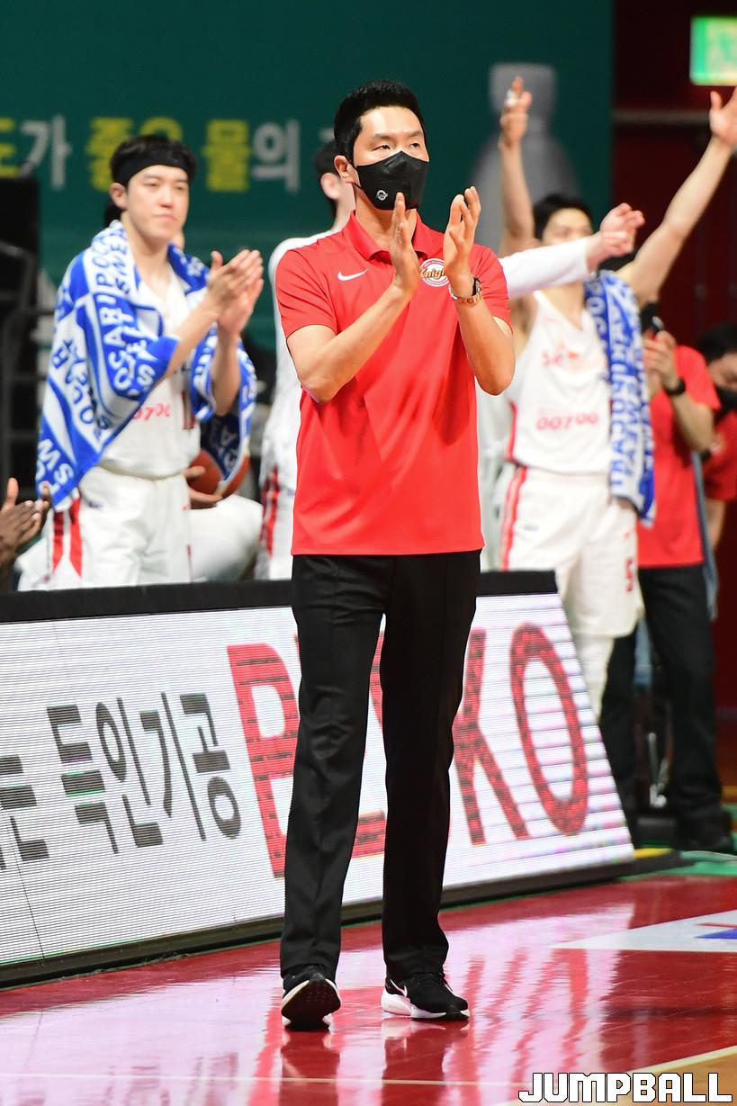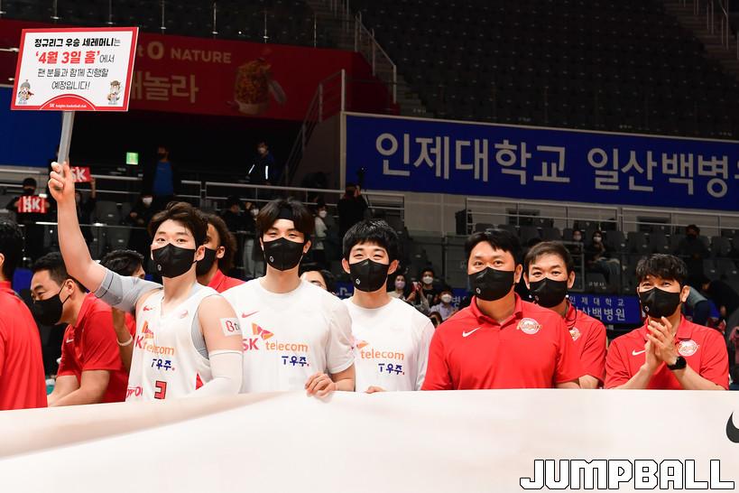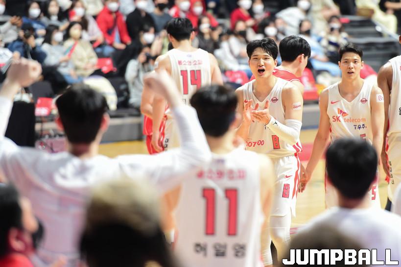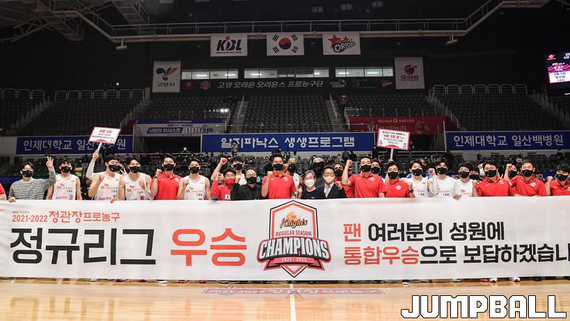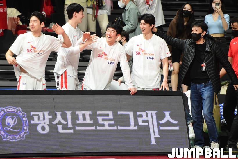 31일 고양체육관에서 열린 2021-2022 KGC인삼공사 정관장 프로농구 고양 오리온과 서울 SK의 경기, SK가 오리온에 92-77로 승리하며 정규리그 우승을 차지하였다. SK와 오리온 경기 화보.