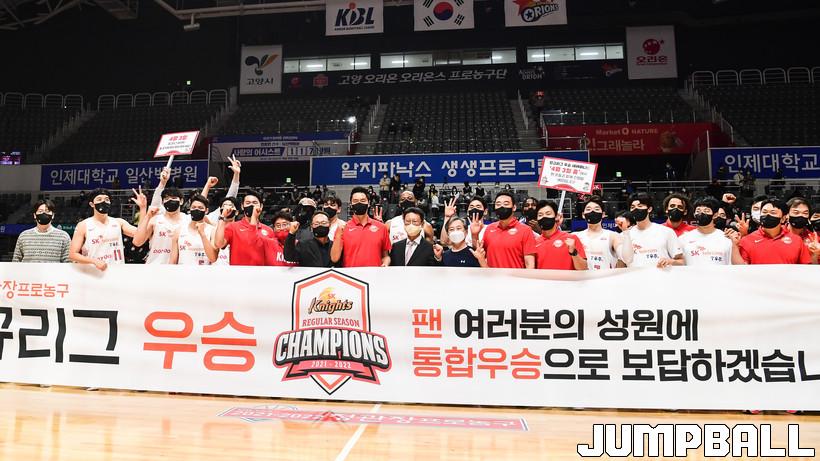 정규리그 우승 확정까지 1승을 남겨놓았던 서울 SK는 고양 오리온을 92-77로 꺾고 정상에 섰다.