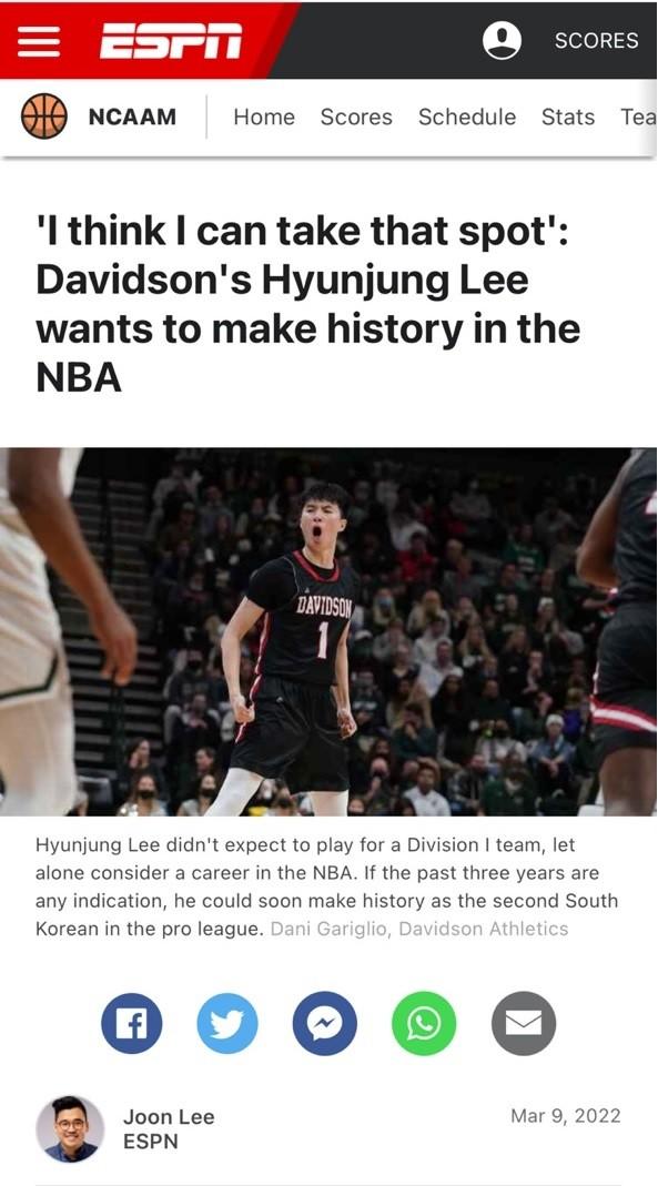 #기사 전문 링크_https://www.espn.com/mens-college-basketball/story/_/id/33440976/hyunjung-lee-hopes-journey-south-korea-davidson-adds-next-stop-nba