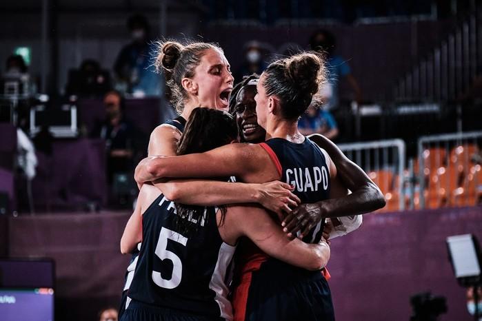 27일 도쿄 아오미 어반 스포츠 파크에서 열린 2020 도쿄올림픽 남녀 3x3 농구 6강 토너먼트에서 라트비아(남)와 프랑스(여자)가 4강 진출에 성공했다.