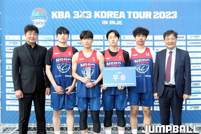 NSBC는 14일 강원도 인제군 인제라이딩센터에서 열린 고양TOP와의 ‘KBA 3x3 KOREA TOUR 2023’ 2차 인제대회 코리아리그 고등부 결승에서 15-13으로 역전승했다. 이로써 NSBC는 1차 대회 MVP로 선정됐던 정환조의 공백에도 불구, 2차 대회에서도 우승을 차지했다.
