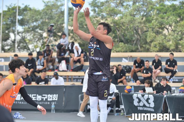 [점프볼=김지용 기자] FIBA 3x3 제주 챌린저 2019에 출전한 박래훈의 3점슛 시도