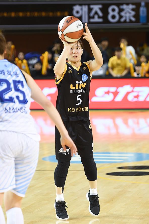 인사이드에서는 카일라 쏜튼(36득점 20리바운드)이 제 몫을 다해냈다. 여기에 이날 들어간 심성영의 3점슛은 삼성생명의 발목을 잡고 역전에 성공하는 발판이 됐다. 1쿼터 KB스타즈의 첫 3점슛을 터뜨린 심성영은 3쿼터 들어 2개의 3점슛을 더 꽂았다. 두 번째 3점슛이 림을 가르며 32-39, 추격의 불씨를 살리게 했고, 세 번째 3점슛은 39-39, 동점으로 상대의 발목을 잡게 했다. 이 슛이 개인 통산 200번째 3점슛. 이는 역대 32호에 해당한다.