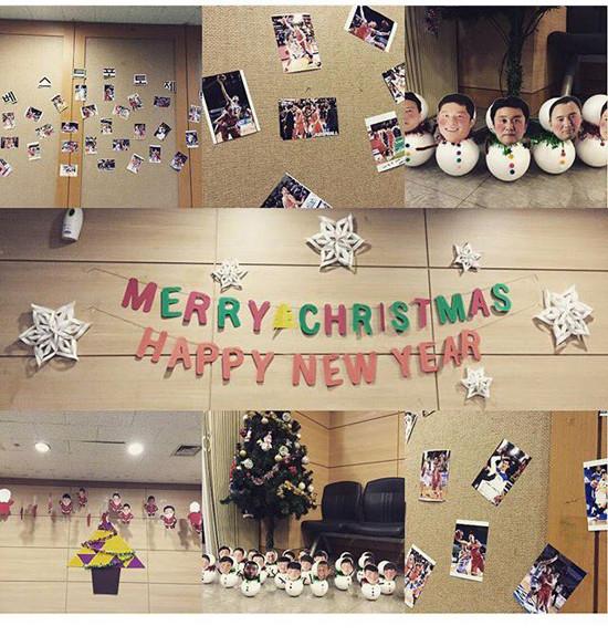 전자랜드 라커룸에 들어가면 크리스마스 분위기를 한껏 느낄 수 있는 트리와 함께 선수들의 얼굴이 붙어있는 눈사람이 보인다. 이어 벽에는 경기 중 선수들의 사진이 붙어있다.