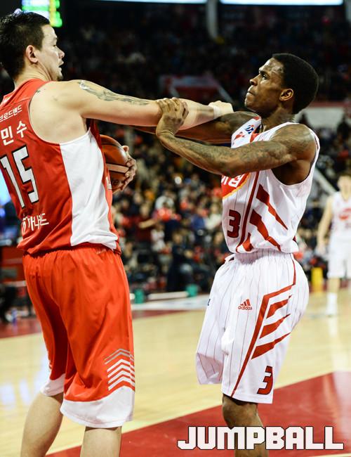 재정위원회는 당시 상황에 대해 분석한 결과, 심판의 휘슬이 울린 상황임에도 불구하고 김민수가 잭슨에게 팔꿈치를 사용한 것이 확인됐으며, 잭슨은 이에 흥분해 상대를 가격하고 심판, 감독 등이 만류함에도 불미스런 행동을 지속적으로 보여준 것 등에 대해 두 선수 모두 스포츠 정신을 위배했다고 판단했다.