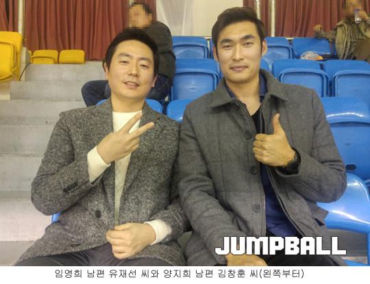 이들은 30일 KDB생명과의 경기에서 나란히 앉아 아내의 경기를 응원했다.