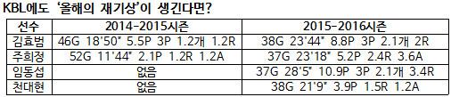 KBL에도 이 타이틀이 있다면, 수상을 기대할만한 선수들이 있다. 2015-2016 KCC 프로농구 정규리그에서 부활한 선수들이 소속팀에서 감초 역할을 톡톡히 하고 있다.