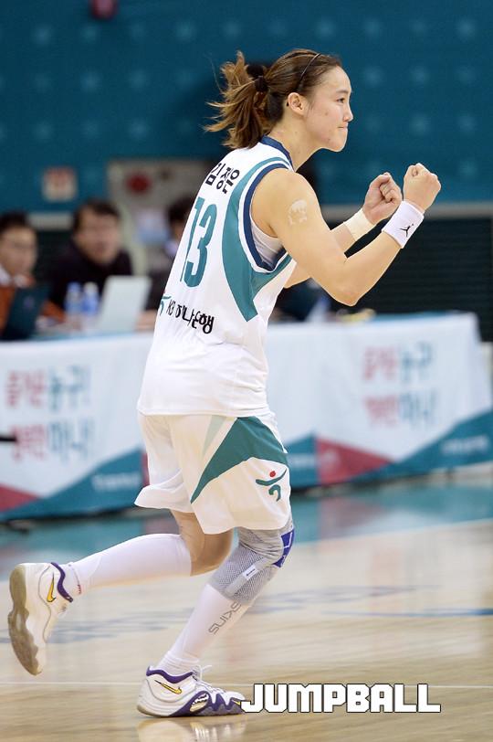 김정은은 무릎부상으로 2달 가까이 결장하다 지난 2일 KDB생명 전에서 복귀했다. 오랜 기간 쉬었기 때문에 체력이나 경기감각이 떨어지는 것은 분명했다.