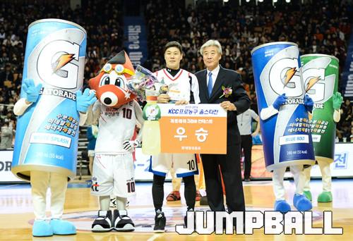 10일 잠실실내체육관에서 2015-2016 KCC 프로농구 올스타전이 열렸다. 올스타전 사이사이에 열린 콘테스트가 재미를 더했다. 그중 1쿼터 종료 후 제일 먼저 팬들의 눈을 사로잡은 것은 ‘게토레이 3점슛 콘테스트’.
