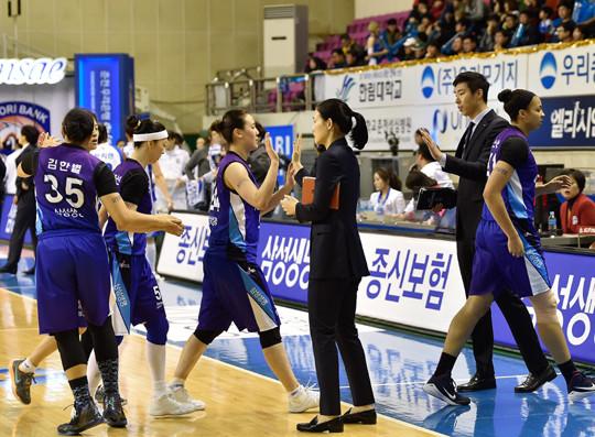 용인 삼성생명은 13일 춘천호반체육관에서 열린 KDB생명 2015~2016 여자프로농구 춘천 우리은행과의 정규리그 경기에서 69-63으로 승리를 거뒀다.