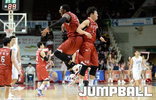 그들이 만든 하이라이트 필름은 2쿼터 3분 24초가 지나고 시작됐다. 김태술의 공을 마리오가 스틸 후 덩크로 연결한 것. 이후 2쿼터를 2분 10초 남기고는 선수들의 호흡이 명장면을 만들어냈다. 다시 한번 스틸에 성공한 마리오가 빠르게 공격으로 전환되는 상태에서 박찬희에게 패스했다. 박찬희는 다시 마리오에게 공을 넘겼다. 그러자 마리오는 이를 비하인드 백 패스로 연결, 뒤따라오던 로드에게 줬고 로드는 이를 강력하고도 화려한 투 핸드 덩크로 마무리했다.