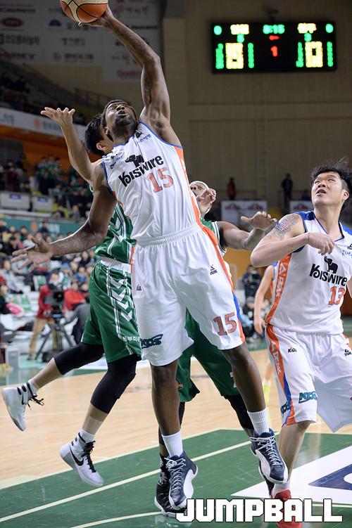 동부는 벤슨이 자유투 득점 기회를 살리지 못하며 흐름을 타지 못했으나, 맥키네스가 득점포로 전자랜드를 끈질기게 쫓았다.