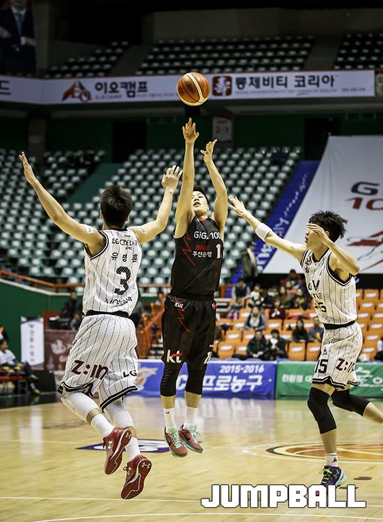 조성민(32, 189cm)은 16일 부산사직실내체육관에서 열린 2015-2016 KCC프로농구에서 창원 LG와의 경기에서 16득점(3점4개) 5어시스트로 활약, 90-70으로 팀에게 승리를 안겼다. 주장의 활약으로 케이티는 홈 2연승을 달리게 되었다.