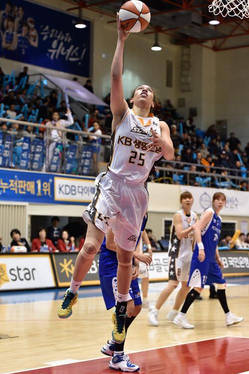 청주 KB스타즈는 22일 구리시체육관에서 열린 KDB생명 2015~2016 여자프로농구 구리 KDB생명과의 경기에서 66-62로 승리했다. 이날 승리로 3연패를 끊은 KB는 10승(13패) 고지를 밟았다.