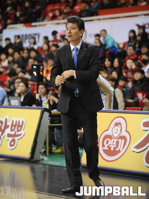 A. 최근 몇 경기에서 실책에 의한 속공을 많이 허용했다. 그래서 오늘 쓸데없는 실책을 줄이고자 했다. 앞선에서 실책을 하게 되면 바로 속공으로 연결되는 경우가 많았고, 그렇게 수비를 제대로 해보지 못하고 패했다. 선수들에게 그런 부분을 강조했다. 빠른 공격이 안 되었을 때는 패턴위주의 공격을 많이 해보려 했다. 오늘 실책이 딱 10개 나왔지만, 속공을 많이 허용하지 않아 만족한다. 리바운드도 앞서고, 수비도 잘 된 편이었다.