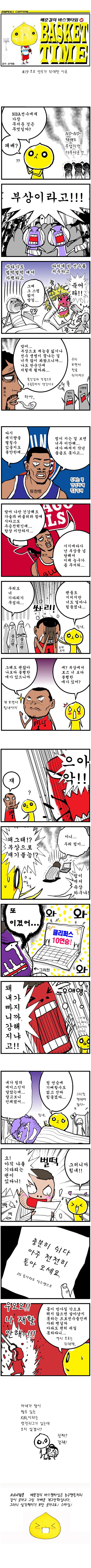 점프볼은 배준걸(38) 작가의 바스켓타임을 연재합니다. 배준걸 작가는 2005년 일본의 만화잡지 '코믹번치'를 통해 데뷔한 후 만화가로 활동해왔습니다. 2012년에는 고단샤가 주최하는 신인만화상 '치바 테츠야상'에서 입선(2등)하는 등 주목을 받아왔습니다. 농구 마니아이자, 생채식 다이어트 개발자로 잘 알려진 배준걸 작가는 바스켓타임을 통해 NBA와 프로농구 스타들의 뒷이야기를 만화로 전할 계획입니다. 많은 관심과 성원 부탁드립니다. 그리고 만화는 만화일뿐! 만화, 그 자체로도 즐겨주시면 좋겠습니다!