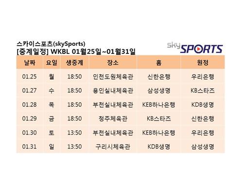[점프볼=맹봉주 인터넷기자] skyTV의 스포츠 전문채널 skySports, ‘WKBL’ 01월25일~01월31일 중계일정 안내