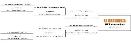 이전까지의 WNBA 정규시즌 방식은 반대 컨퍼런스 팀을 홈, 원정에서 각각 1회씩 상대하는 방식이었다.(총 12게임) 하지만 새롭게 변화되는 WNBA의 정규시즌 방식은 다음과 같다. (WNBA의 각 컨퍼런스는 6개의 팀들로 구성되어있고, 총 12개의 팀으로 유지 되고 있다)