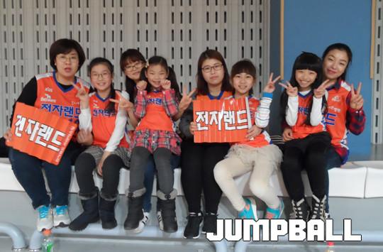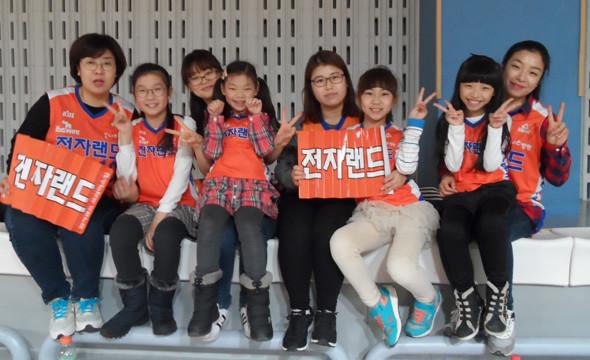홍정미 : 얘들은 전자랜드 어린이 치어리더들이에요. 전자랜드 어린이 치어리더 38명 중에 오늘 경기를 보러 오겠다고 한 애들이 얘네 넷이에요. (아하, 그래서 춤을 잘 췄군요.) 5년 된 전자랜드 어린이 팬도 있어요.