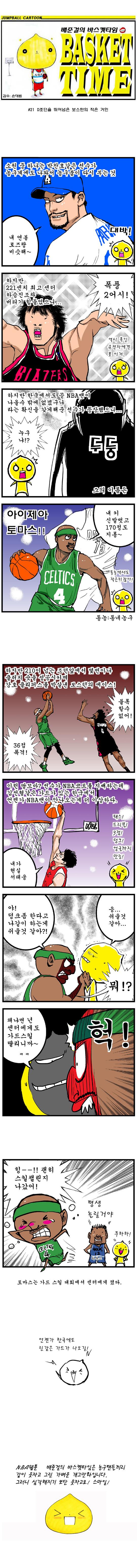 [점프볼=편집부] 점프볼은 배준걸(38) 작가의 바스켓타임을 연재합니다. 배준걸 작가는 2005년 일본의 만화잡지 '코믹번치'를 통해 데뷔한 후 만화가로 활동해왔습니다. 2012년에는 고단샤가 주최하는 신인만화상 '치바 테츠야상'에서 입선(2등)하는 등 주목을 받아왔습니다. 농구 마니아이자, 생채식 다이어트 개발자로 잘 알려진 배준걸 작가는 바스켓타임을 통해 NBA와 프로농구 스타들의 뒷이야기를 만화로 전할 계획입니다. 많은 관심과 성원 부탁드립니다. 그리고 만화는 만화일뿐! 만화, 그 자체로도 즐겨주시면 좋겠습니다!