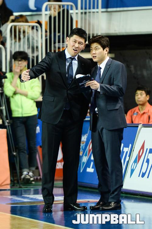 하지만 이들 뒤에서 묵묵히 자기 몫을 해내며 팀 우승의 결정적인 역할을 해낸 사람이 있다. 바로 올 시즌 추승균 감독을 보좌하며 팀을 이끈 정선규 코치(36)와 최승태(34) 코치.