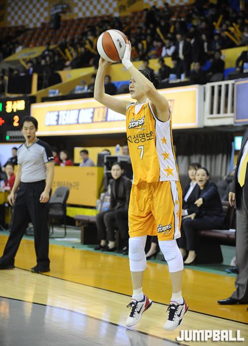 KB스타즈의 장점인 외곽플레이의 핵은 강아정이다. 강아정은 삼성생명전에서도 3점슛 5개를 터트리며 팀 공격을 주도했다. 삼성생명이 쫓아올 때마다 외곽슛을 터트리는 등 득점 이상의 큰 효과를 냈다.