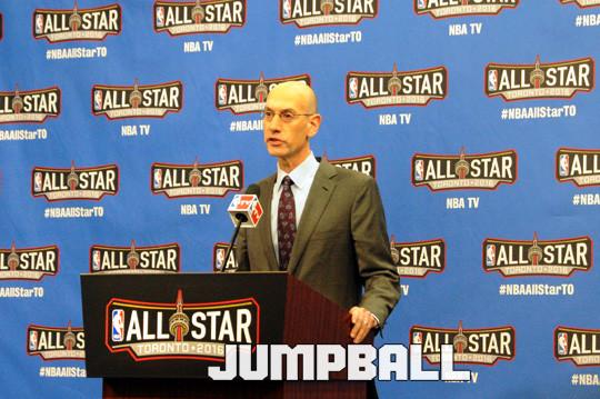 [점프볼=손대범 기자] 2016년 동부 컨퍼런스 올스타 인터뷰 사진 : 아담 실버 총재(NBA), 첸시 빌럽스(전 DET, 은퇴), 카멜로 앤써니(NYK), 크리스 보쉬(MIA), 더마 데로잔(TOR), 드웨인 웨이드(MIA), 지미 버틀러(CHI), 존 월(WAS), 르브론 제임스(CLE), 폴 밀샙(ATL), 폴 조지(IND)
