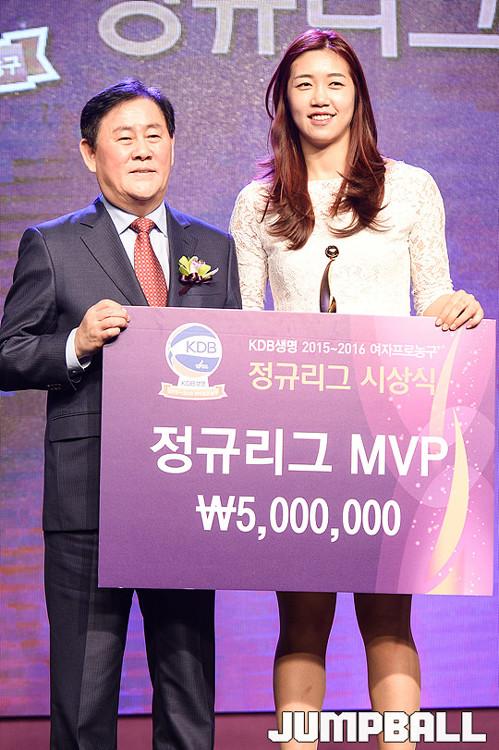 우리은행의 양지희는 7일 여의도 63컨벤션센터 2층 그랜드볼룸에서 열린 KDB생명 2015-2016 여자프로농구 정규리그 시상식에서 MVP를 수상했다.