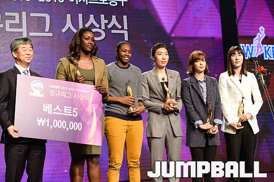 WKBL 관계자는 “국내선수들에게 되도록 많은 상을 주자는 취지가 있는 것은 맞다”며 “외국선수들을 시상에 포함시키는 것은 구단과 논의를 해볼 수 있는 문제다. MVP, 베스트5는 기자단 투표에 의해 결정된 부분이어서 우리도 결과를 보고 놀랐다. 보완할 부분이 있는지 논의를 해봐야 할 것 같다”고 말했다.