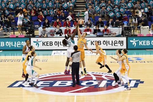 부천실내체육관에서 펼쳐지는 부천 KEB하나은행과 청주 KB스타즈의 플레이오프 1차전. 첼시 리-버니스 모스비의 트윈타워를 보유한 KEB하나은행과 강아정, 변연하, 정미란 등 외곽포로 중무장한 KB가 챔피언결정전 티켓을 놓고 다툰다.