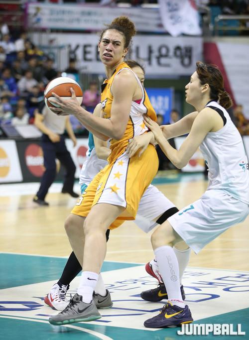 KB는 홍아란이 스크린을 받고 던진 중거리 슛과 강아정의 3점슛으로 리드를 뺏기지 않았다. 햄비도 골밑에서 투지 넘치는 플레이를 보였다. 특히 첼시 리를 상대로 전혀 주눅 들지 않으며 득점과 리바운드에서 제 몫을 다했다.