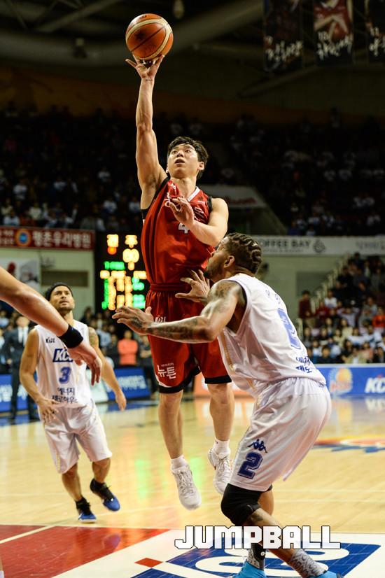승부터 김윤태의 수비가 빛났다. KGC인삼공사 승리의 발판이 됐다. 김윤태가 4쿼터 47초를 남긴 때 75-75, 동점 상황에서 공격하는 전태풍을 막았다.