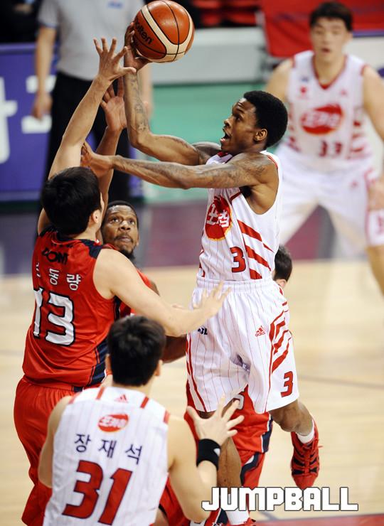 오리온의 전력상승 요인이라면 역시 최진수의 합류를 들 수 있다. 5라운드 막판 상무에서 전역한 최진수는 팀 전력을 더 강하게 해줄 카드로 평가받았다. 202cm의 큰 신장에 외곽공격까지 가능한 최진수는 국가대표에도 선발된 적이 있는 선수다. 복귀 초기에는 최진수의 활약이 미미했다. 팀 시스템에 녹아들지 못 하는 모습이었다. 아무래도 환경이 달랐다. 상무에서는 4번으로 뛰었지만, 오리온에선 3번으로 뛰는 시간이 더 많았다. 또 외국선수가 둘이 뛰는 상황에서 최진수는 기존에 해오던 공격적인 모습보다는 도우미 역할을 더 많이 해야 했다. 최진수 역시 6강 플레이오프를 치르며 적응을 하는 모습이었다. 외곽에서 3점슛을 터뜨렸고, 신장을 이용해 제공권 싸움에 힘을 보탰다. 이번 시리즈에선 양동근 수비를 성공적으로 해내며 승리를 견인했다. 정통센터가 없는 오리온은 최진수의 가세로 높이의 약점을 보강할 수 있었다. 도움블록으로 상대에 충분한 위협을 준 최진수다.