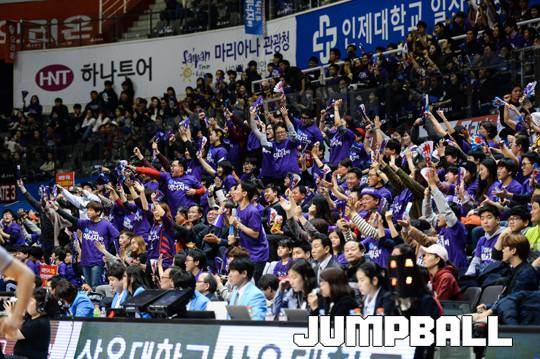 하지만 올 시즌의 오리온은 달랐다. 6강 플레이오프에서 원주 동부를 3연승으로 꺾고 9년 만에 4강 PO에 올랐다. 그리고 4강 PO서 만난 디펜딩 챔피언 모비스를 상대로 적지에서 2연승을 거두고 이곳에 도착했다. 울산에서 불어 온 오리온 선수단의 신바람이 고양 홈팬들에게도 이어지는 경기장에는 보라색 물결이 가득했다.