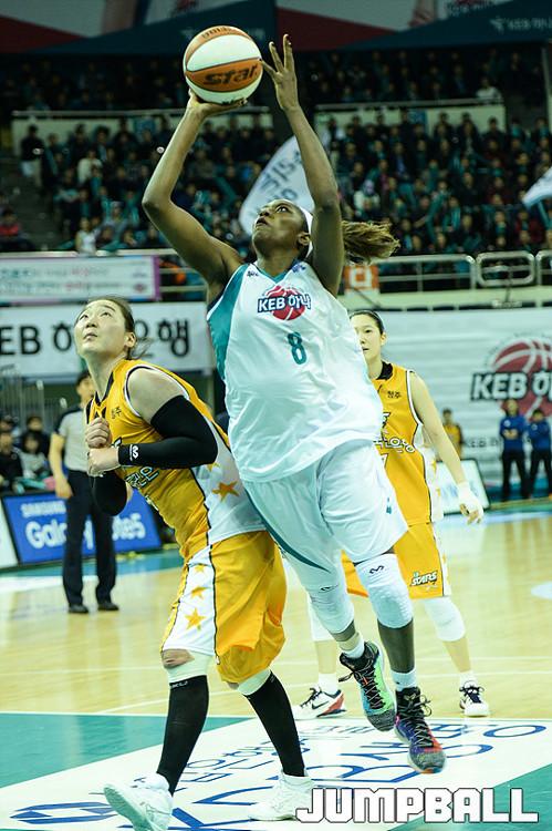 경기는 4쿼터 막판까지 접전으로 전개됐다. KB는 변연하의 3점으로 3쿼터 막판 좋았던 분위기를 이어갔다. KEB하나은행도 김정은의 득점으로 물러서지 않았다.