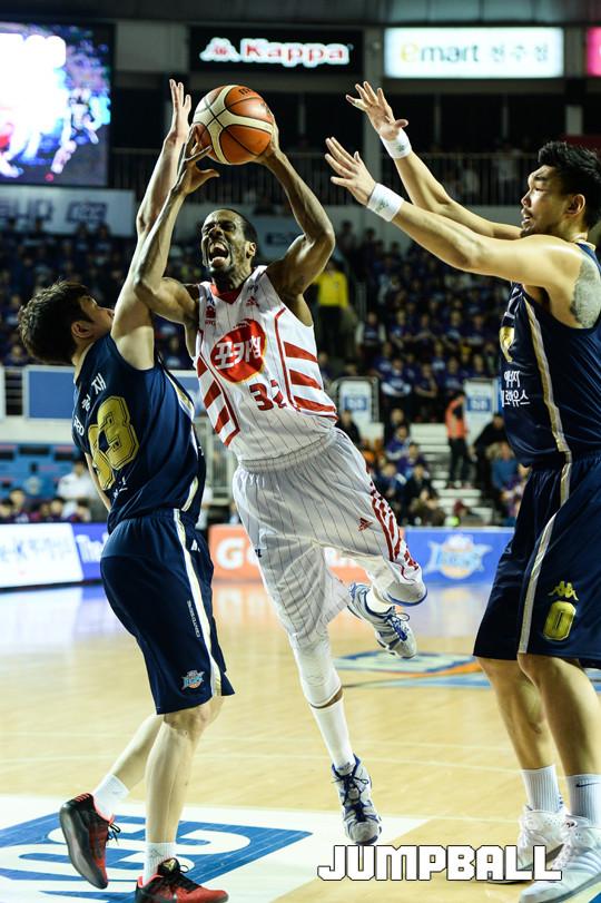 오리온은 에밋에 대한 수비를 철저히 준비한 모습이었다. 기본적으로 국내선수인 김동욱과 장재석에게 에밋의 수비를 맡겼다. 그리고 헤인즈로 하여금 에밋에 대한 견제를 붙였다.