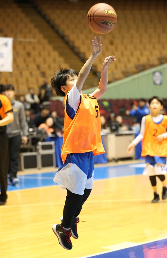 20일 잠실학생체육관에서 열린 제9회 서울삼성 리틀썬더스 농구대회 목동A팀과 잠실B팀과의 경기에서 목동A팀의 이호민이 빠르게 코트를 내달려 속공을 마무리 하고 있다.