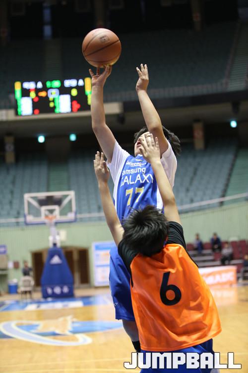 20일 잠실학생체육관에서 열린 제9회 서울삼성 리틀썬더스 농구대회 초등부 고학년부 분당A팀과 목동A팀의 결승전에서 분당A팀의 한 선수가 마치 프로선수들을 연상케 하는 모습으로 골밑 공격을 펼치고 있다.