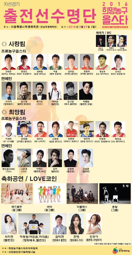 [점프볼=곽현 기자] 희망농구올스타에 출전하는 선수들과 연예인들이 확정됐다.