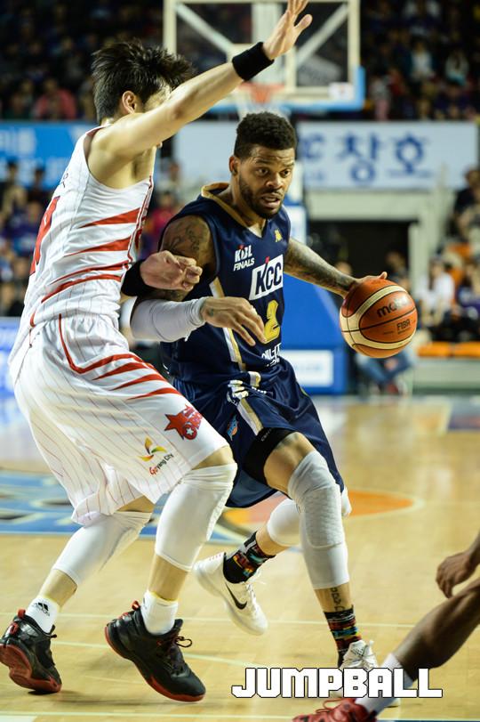 KCC와 오리온의 챔프전 시리즈 가장 큰 화두는 바로 에밋에 대한 수비였다. 오리온은 가공할 득점력을 뽐내는 에밋을 막기 위해 변칙 수비를 준비했고, 시리즈 초반 잘 먹혀들어가는 모습을 보였다.