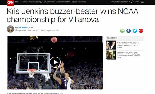 NCAA 토너먼트 결승전 역사상 기억에 남는 슛이라면 1982년 UNC의 마이클 조던의 결승슛, 그리고 2008년 캔사스의 마리오 차머스의 동점슛이 기억에 남아 있다. 이제 크리스 젠킨스의 슛이 영원히 기억될 것이고 향후 NCAA 토너먼트 때마다 이 장면은 반복되고 또 반복되어 보여질 게 확실하다.